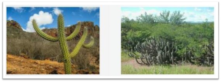 THE PLANTS. The vegetation of northeastern Brazil is a unique ecosystem. Formed by small trees and far between these plants are called xerófilas. ( Word of Greek origin ” Xero ” ,” Fhilo ” friend.) Are adapted to the semi-arid climate conditions, which predominates in the Northeast and has average temperature above 25°C. little it rains irregularly, usually in the summer months. The Caatinga Word and indigenous Tupi origin and means ” thin kills” or” spiny forest”. This name received the Indians who inhabited the region because during the period of water shortage in the region vegetation is whitish, almost leafless.